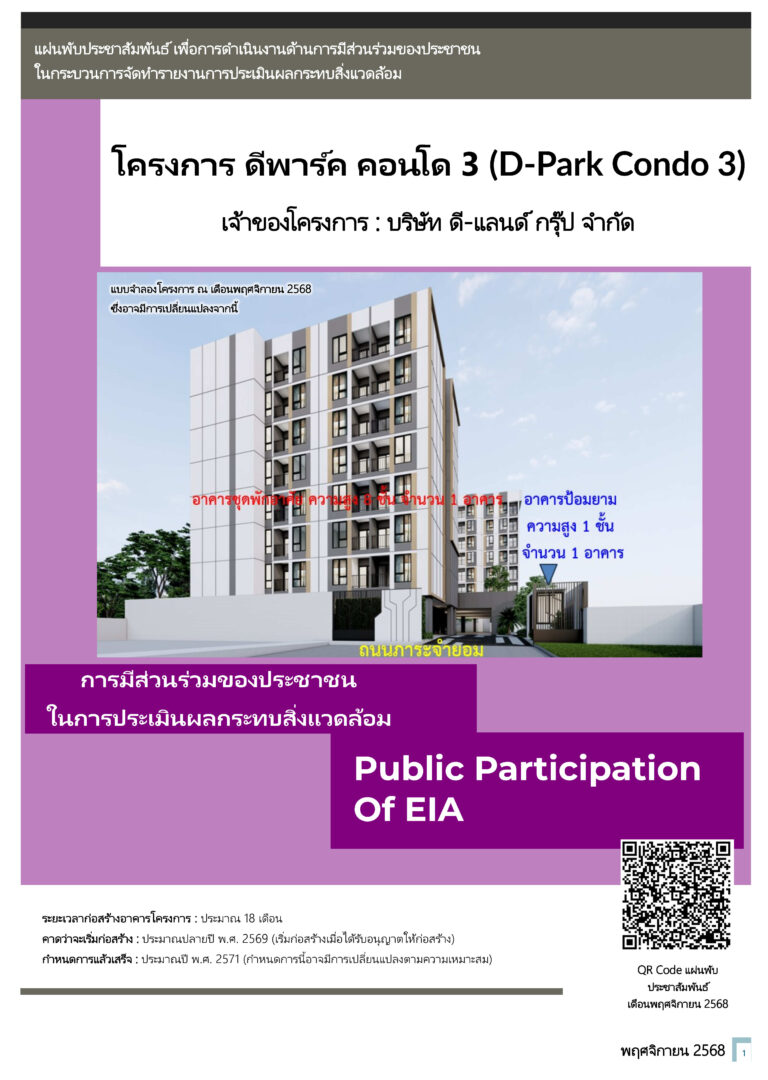 สรุปรายละเอียดข้อมูลโครงการ และกำหนดการจัดประชุมรับฟังความคิดเห็น